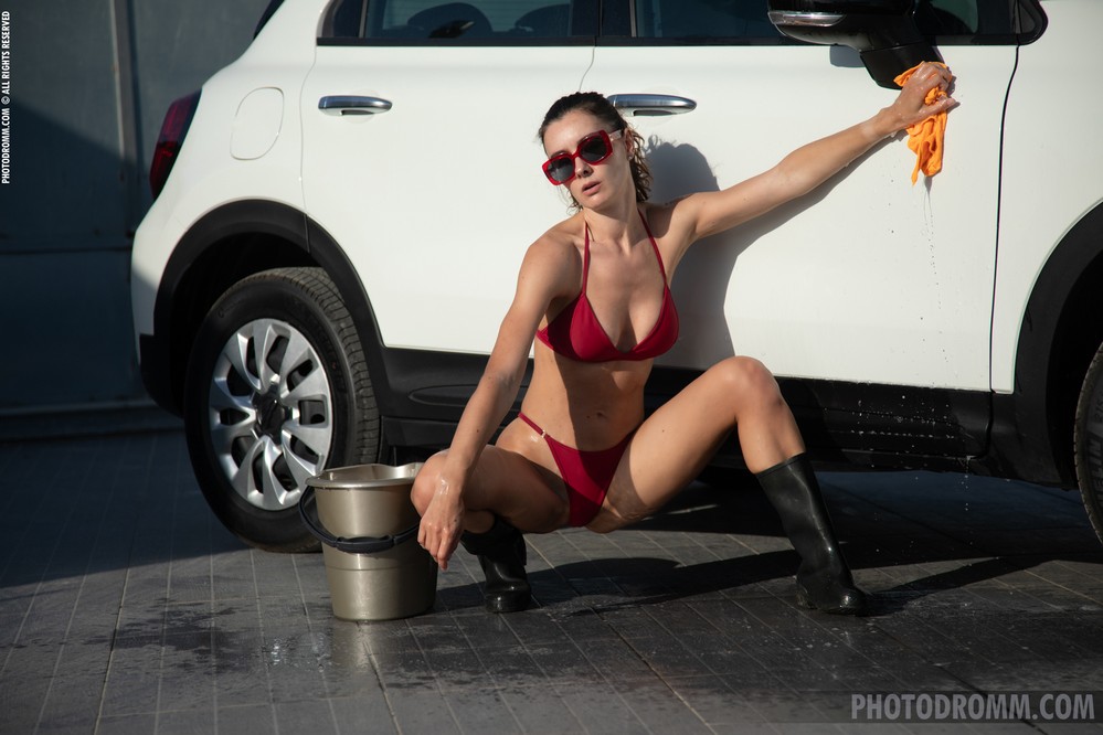 Livia, stunning brunette with long black hair, starts in sheer white lace lingerie and garters, adjusting her skimpy panties over her slim h…